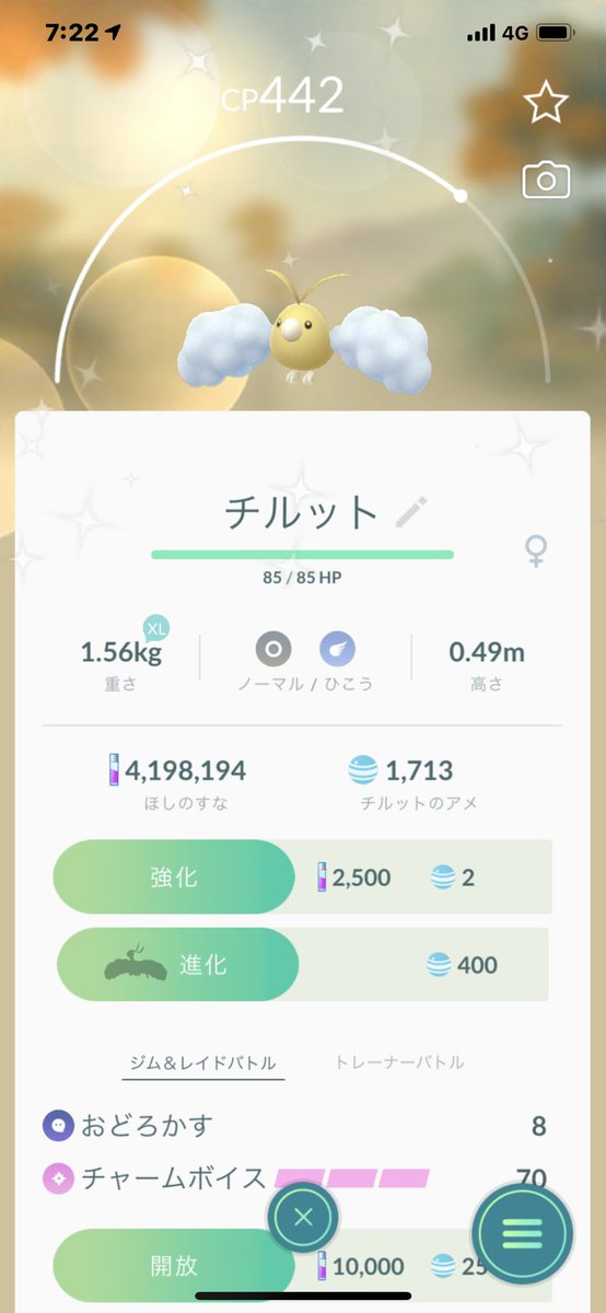 チルットのアメがついに400個 チルタリスに進化させてみた ついでに強化とわざマシンも使ってみた ポケモンgo 山椒は小粒でもピリリと辛い